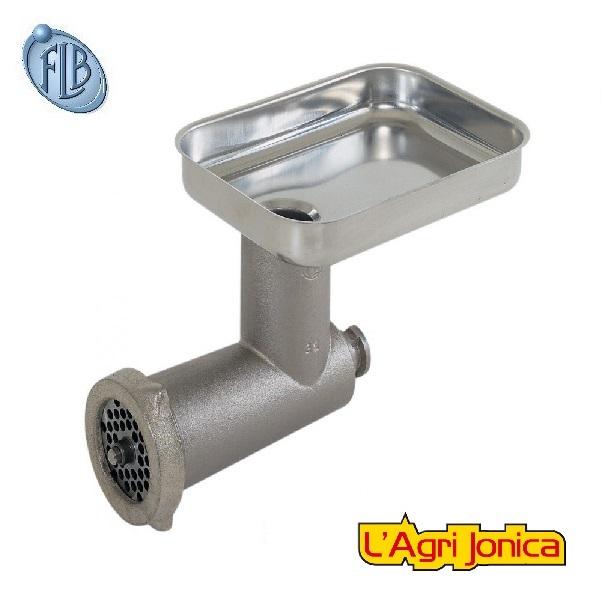 L’accessorio tritacarne è composto dal corpo, dall’elica e dall’anella in ghisa certificata con trattamento in Niploy certificato per uso alimentare.
